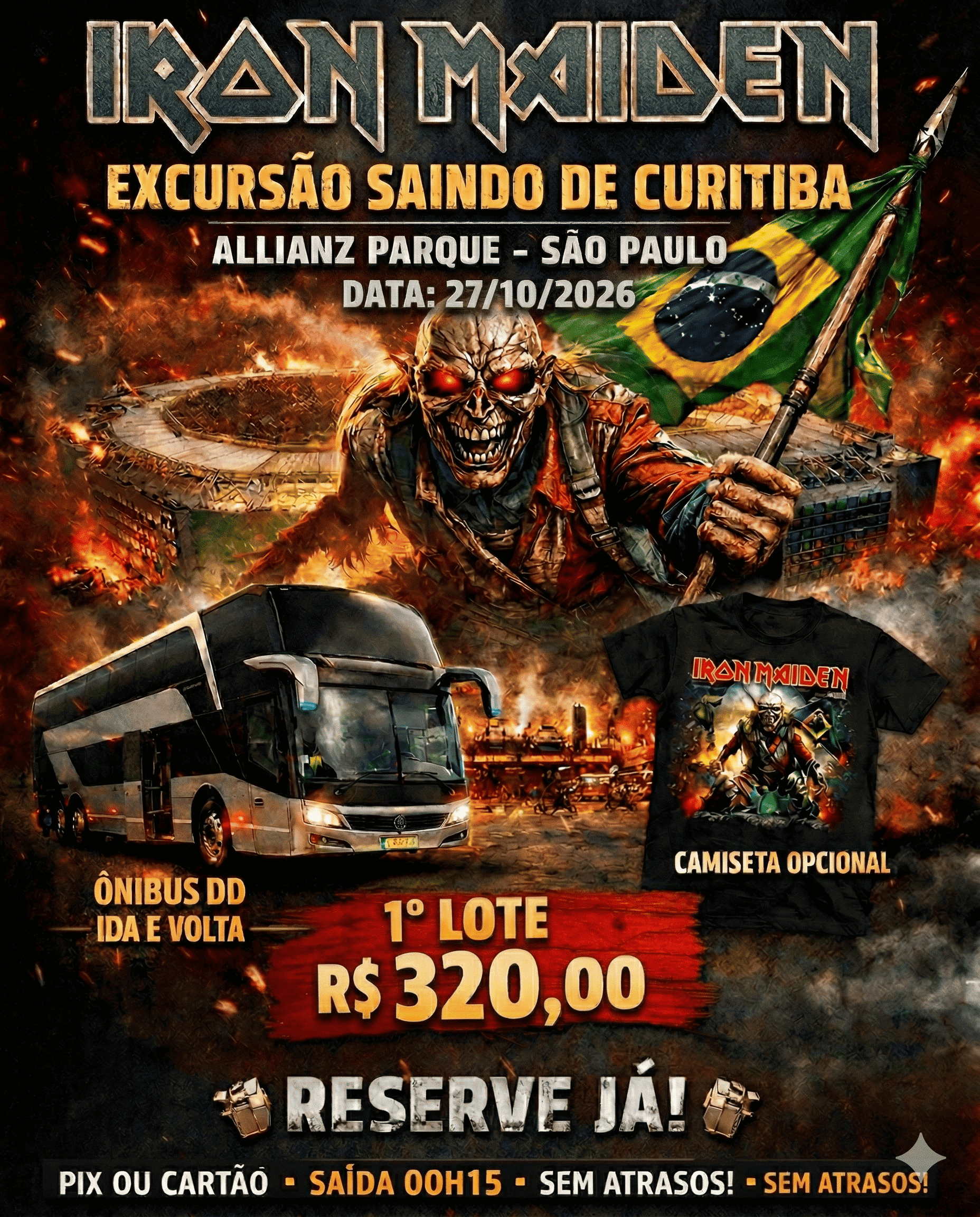 Excursão Iron Maidem 27/10 saindo de Curitiba